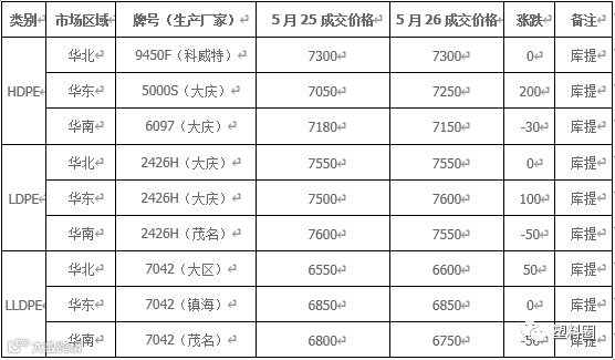 吨左右。今日石化出厂价格上调居多,中油华北、中油西南及中石化华中等大区各品种部分继续上调,中油华东及中油华南个别高低压仍有小幅下降,中石化华北等部分大区手工加价销售。塑料期货震荡小涨,为现货市场交投气氛带来一定支撑,商家心态暂稳,观望出货为主。供应方面来看,虽然石化延续去库存,但当前石化装置检修较多,后期石化供应有所减少。终端工厂整体需求变化不大,维持刚需采购为主,实盘多商谈而定。当前国内