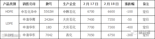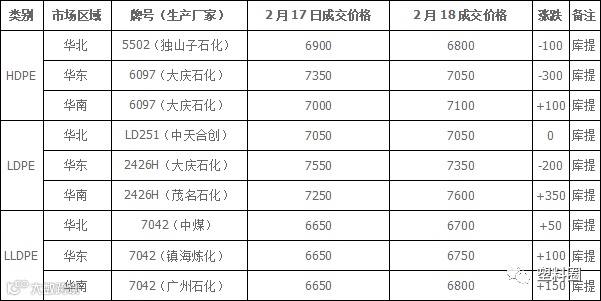 今日国内PE市场价格涨跌互现,涨跌幅度多在50-350元/吨不等。华北、华东市场多数调整50-300元/吨,华南市场多数上涨50-350元/吨不等。石化出厂价格部分下调50-400元/吨不等,市场成本支撑力度有所减弱。线性期货高开震荡上行,提振业者信心。商家多数随行调整报盘。下游工厂逐步开工,部分业者入市询盘,市场交投气氛较昨日好转。以神华竞拍为例,成交率在4.51%(较上一交易日提高2.54%)。当前,国内LLDPE主流市场价格在6600-7550元/吨;LDPE主流市场价格在6950-7700元/吨;HDPE膜主流市场价格在6850-7100元/吨。