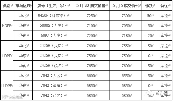 吨左右。今日石化出厂价格部分续涨,中石化华东、中石化华中及中油华东等大区各品种部分继续上调。塑料期货震荡小涨,为现货市场交投气氛带来一定支撑,商家心态暂稳,多随行就市出货为主。供应方面来看,当前石化检修期季中,检修逐渐增多,石化去库存效果明显。中单工厂整体需求一般,询盘尚可,维持刚需采购为主,实盘多一单一谈为主。当前国内
