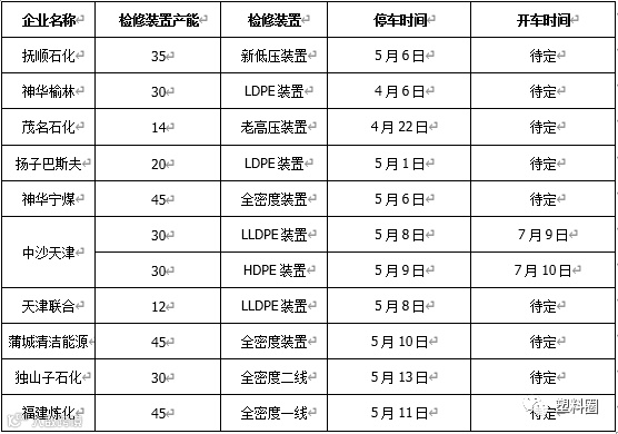 石化停车检修统计