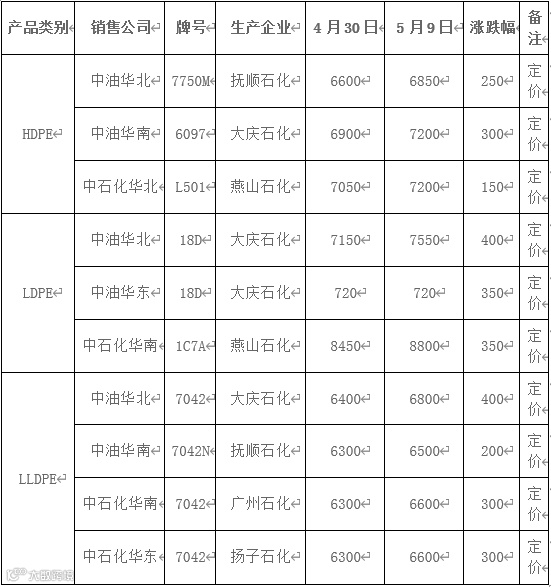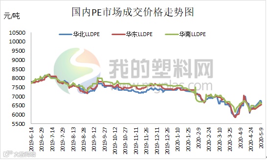本周线性主流价格6500-7300元/吨,环比上周涨200-300元/吨左右,高压主流价格在7250-7800元/吨,较上周涨跌幅度在200-300元/吨;低压各产品价格涨幅不一,幅度多在100-200元/吨不等。