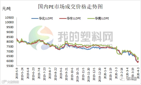 本周受国际疫情影响,越来越多国家为了控制冠状病毒扩散采取了封锁措施,港口清关难度增加以及运输时间推迟、成本上涨,都导致需求下降,本周亚洲PE价格全线大幅下跌,高压以及低压膜料跌幅较大。国外疫情依旧严峻,外贸出口订单明显萎缩,国内的高库存也抑制了进口,听闻有贸易商对卡塔尔高压报价735美元/吨。而在东南亚,贸易商表示不少企业出现付款延迟甚至赖单的现象,为了阻止冠状病毒的传播,越南、马来西亚、印度、菲律宾和泰国都有企业在4月上半月计划关闭部分聚乙烯装置。大连商品交易所2020年5月交投活跃的LLDPE期货价格本周暴跌555元/吨,至周三收盘结算价报5,565元/吨。