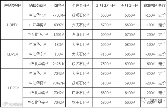 本周线性主流价格5900-6300元/吨,环比上周跌300-400元/吨左右,高压主流价格在6700-7300元/吨,环比跌100-300元/吨不等;低压各产品价格跌幅不一,幅度多在100-300元/吨不等。