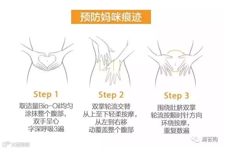 这款孕期护理油针对预防妊娠纹有特殊的手法,请参考下图。记住涂抹手法,会事半功倍哦!