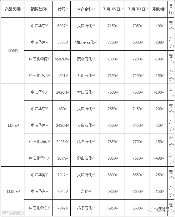 吨。周初起线性期货震荡走跌,明显打压业者心态。国际油价连续大跌、石化不断下调出厂价格,场内货源成本支撑弱势。商家心态悲观,多跟跌报盘,市场价格不断下跌。下游拿货谨慎,出刚需拿货多维持观望态度,场内整体交投气氛清淡。周末期货高开震荡,国际油价大幅反弹,一定程度缓解业者紧张情绪,部分商家小幅调整报盘。下游入市积极性增高,场内询盘成交较好,整体交投气氛较周初有所好转。