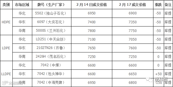 今日国内PE市场价格调整,涨跌幅度多在50-200元/吨不等,以跌为主。华北市场走跌50-100元/吨;华东市场调整50-200元/吨,华南市场走跌50-150元/吨。石化高低压出厂价格部分下调100-200元/吨不等,线性出厂价格稳定,市场成本支撑力度减弱。线性期货高开震荡,一定程度提振业者信心。商家部分调整报盘,线性现货价格相对讲头,高、低压成交不畅,报盘继续下移。下游工厂恢复缓慢,需求有限,市交投气氛依旧清淡。当前,国内LLDPE主流市场价格在6600-7550元/吨;LDPE主流市场价格在6950-7700元/吨;HDPE膜主流市场价格在6750-7400元/吨。