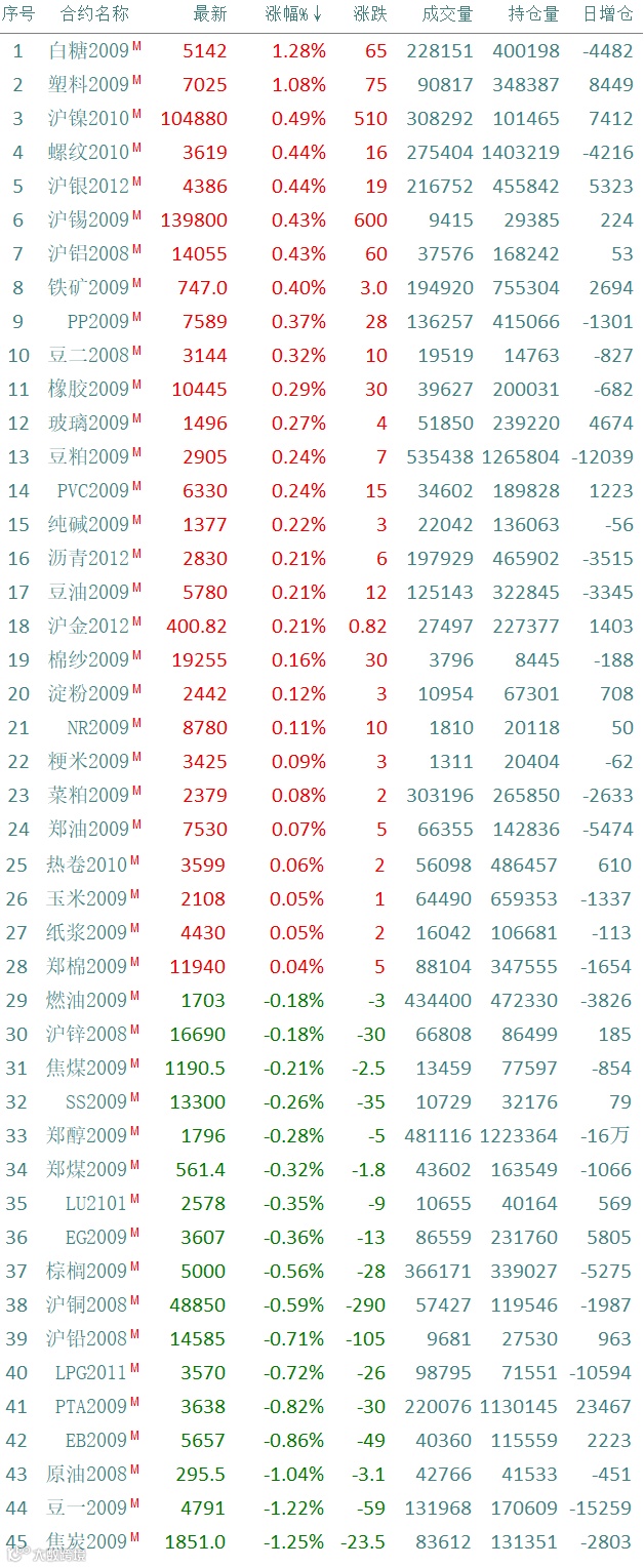 ,沪铜、玻璃、焦炭小幅下跌。周五夜盘商品涨多跌少,塑料相关品种方面