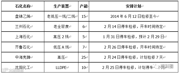 表3 PE石化停车检修统计