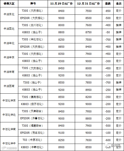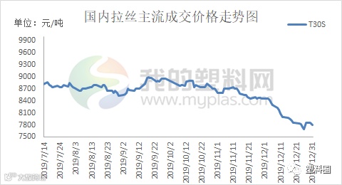 根据我的塑料网真实成交数据显示,本月国内PP市场价格呈下跌态势。截止12月31日,国内拉丝主流成交价格在7450-7900元/吨左右,整体价格较上月下跌500-600元/吨左右;低融共聚主流价格在8350-9200元/吨左右;价格较上月下跌300-450元/吨左右。
