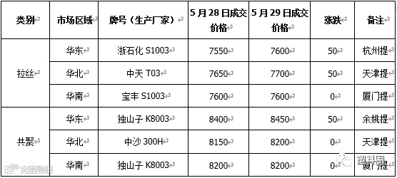表1 我的塑料网(www.myplas.com)PP市场成交价格(单位:元/吨)