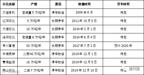 表3 PP石化停车检修统计