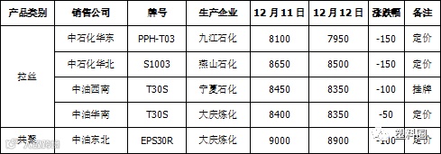 表2 石化出厂价格调整一览表(单位:元/吨)