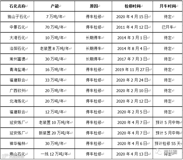 等装置停车检修中,对供应端压力有一定缓解;石化