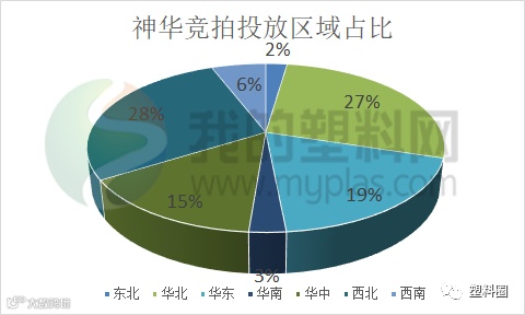 就投放区域来看,西北地区成为神华投放的重点区域,本周西北投放量在3654吨,占比28.05%;华北地区投放量在3589.875吨,占比27.56%;华东地区投放数量在2424吨,占比18.61%。