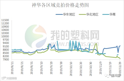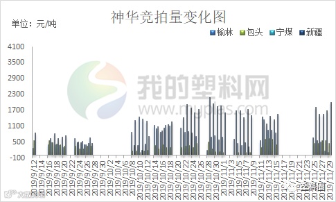 本周神华PP竞拍总量在13025.875吨。其中神华榆林竞拍量在1996吨;神华包头竞拍量在2450吨;神华宁煤竞拍量0吨;神华新疆竞拍量在8579.875吨。