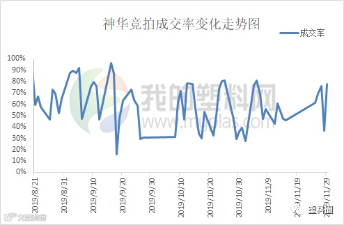 本周国内神华系列PP竞拍平均成交率在64.09%。其中成交率峰值出现在11月29日,成交率上升至77.52%,主因PP期货震荡上涨,对业者心态略有提振;月底石化惯性挺价,场内部分货源供应不宽松,对市场价格有一定支撑;部分装置停车检修, PP供应端整体压力暂时不大。谷值成交率出现在11月28日,成交率跌至36.69%,主因终端下游需求依旧乏力,刚需补仓为主,市场成交难以放量;进口货源陆续到港,对国内现货市场造成一定打击。