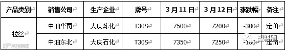 表2 石化出厂价格调整一览表(单位:元/吨)