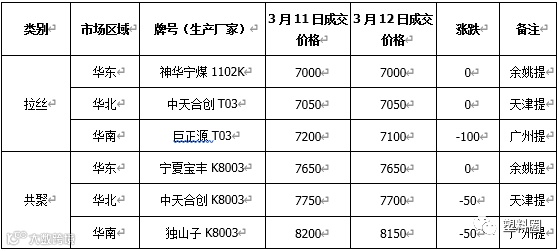 表1 我的塑料网(www.myplas.com)PP市场成交价格(单位:元/吨)