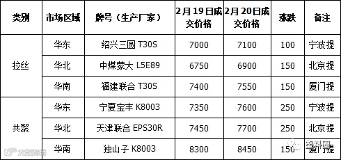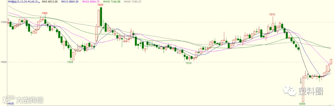 今日国内PP市场价格继续走高,拉丝主流价格上涨100-150元/吨左右;部分地区共聚价格上涨150-250元/吨左右。价格方面,国内拉丝主流价格在6900-7150元/吨不等,低熔共聚主流价格在7550-8300元/吨不等。PP期货盘面高开震荡走高,对业者心态有一定提振作用。石化出厂价格多数稳定,个别有上调,场内货源成本支撑增强。终端下游开工逐渐增多,市场需求量增加,贸易商积极高报出货,市场成交较前期有所好转。