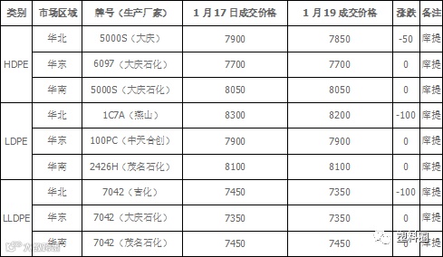今日国内PE市场价格部分走跌100元/吨以内。华北市场部分下跌50-100元/ 吨,华东、华南市场暂稳。石化出厂价格多数持稳,部分线性下调50-100元/吨,市场成本支撑力度一般。商家多数随行出货为主。临近春节,下游工厂逐步进入停工状态,拿货清淡,实盘零星成交。以神华竞拍为例,成交率在14.98%,(较上一交易日减少23.83%)。当前,国内LLDPE主流市场价格在7200-8050元/吨;LDPE主流市场价格在7400-8750元/吨;HDPE膜主流市场价格在7450-7700元/吨。