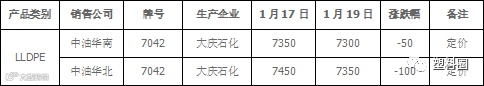 表2 石化出厂价格调整一览表(单位:元/吨)