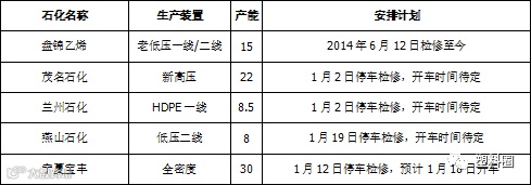 表3 PE石化停车检修统计