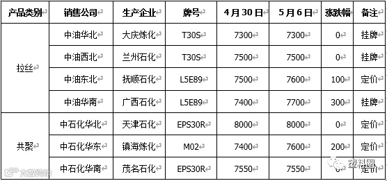 表2 石化出厂价格调整一览表(单位:元/吨)