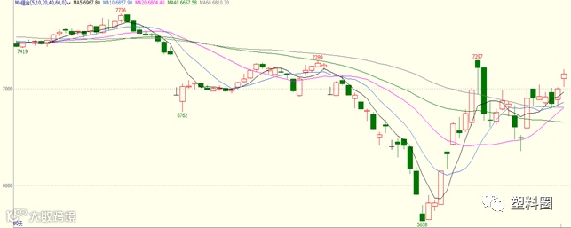 盘面情况:PP2009合约开盘7106元/吨,最低 7021元/吨,最高7198元/吨,收于7152元/吨,涨214元/吨,涨幅3.08%。成交量减少至768130手,持仓量增加14658手至445098手。技术面来看周三期价高开上行,早盘高开下探之后期价回归到均线上方运行,收带上下影线的小阳线,盘面资金流入1.87亿。MACD指标均变长,两线开口继续扩大,KDJ进入超买区域,短期09合约偏强思路对待,但谨防主力高位洗盘。支撑位7000,压力位7300。