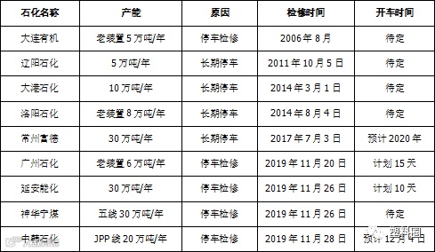 表3 PP石化停车检修统计