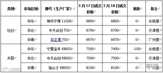 表1 我的塑料网(www.myplas.com)PP市场成交价格(单位:元/吨)