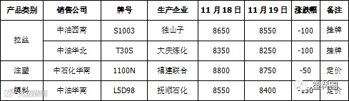 表2 石化出厂价格调整一览表(单位: