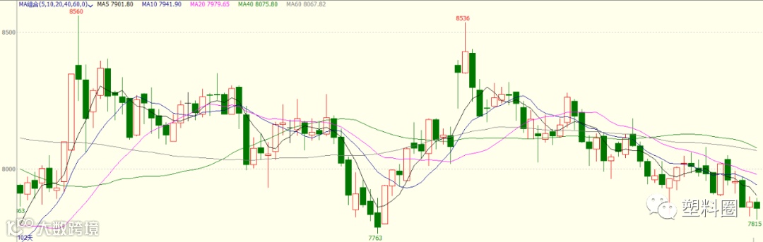 PP2001合约开盘7880元/吨,最低7815元/吨,最高7893元/吨,收于7856元/吨,跌8元/吨,跌幅0.10%。