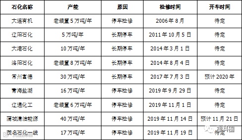 表3 PP石化停车检修统计