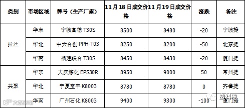 表1 PP市场成交价格(单位: