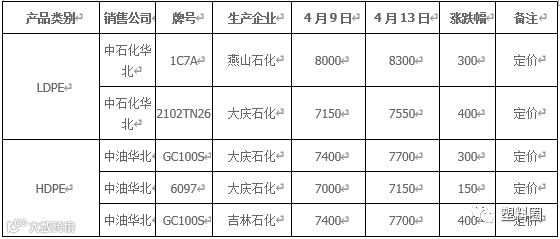 今日国内PE市场报盘稀少,价格延续上行,上涨幅度多在300-500元/吨左右,价格较为混乱。早间中石化华东、中石化华南、中石化华北及中油各大区相继上调PE出厂价格,上调幅度多在300-500元/吨。线性期货高开宽幅震荡上行,多数石化大区连续上调为市场带来较强支撑。线性期货高开后宽幅震荡上涨,终端用户询盘积极性有所提升,多积极寻求低价货源为主,实盘成交多商谈而定,商家心态向好,多抬高报价出货,部分品种封盘观望。4月13国内神华系列PE竞拍总量1200吨(较上一交易日减少100吨),成交率在83.33%,(较上一交易日增加21.25%),今日溢价幅度在30-370元/吨。当前国内LLDPE主流市场价格在6600-7000元/吨;LDPE主流市场价格在7400-7800元/吨;HDPE膜主流市场价格在7600-7800元/吨。