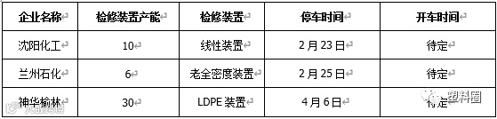 表3 PE石化停车检修统计