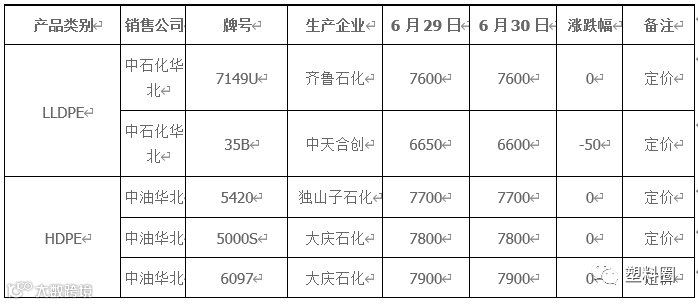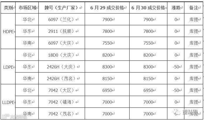 表1 我的塑料网(www.myplas.com)PE市场成交价格(单位:元/吨)