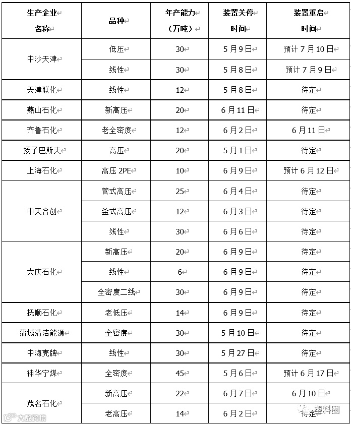 利多因素:塑料期货震荡上涨,提振现货市场交投气氛;中油华北、中油华东及中油西北等石化大区继续补涨部分PE出厂价格;当前石化装置检修较多,福建联合、独山子石化及蒲城清洁能源等部分装置处于检修中,为市场局部地区带来支撑。