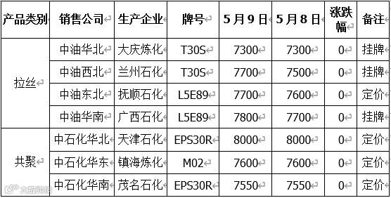 表2 石化出厂价格调整一览表(单位:元/吨)