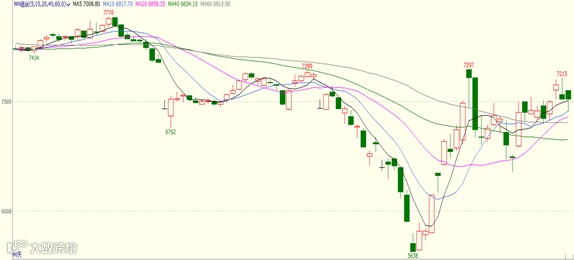 盘面情况:PP2009合约开盘7100元/吨,最低 6912元/吨,最高7100元/吨,收于7022元/吨,跌97元/吨,跌幅1.36%。成交量减少至961094手,持仓量减少6071手至428593手,资金流出4689万。PP2009期货震荡下行,日内多在均线下方运行,尾盘收跌,缩量减仓收带下影线的小阴线。技术面来看,MACD技术指标指引力度不强,KDJ技术指标形成死叉。从60分钟线来看,MACD绿柱羧酸,KDJ技术指标在超卖区拐头向上。短期来看,PP09合约上冲压力位失败,回调测试支撑。支撑位6800,压力位7300。
