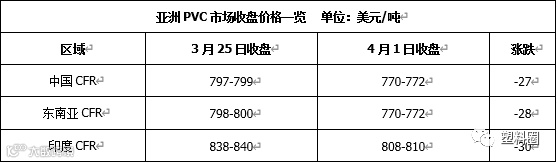 VCM:本周亚洲地区报盘下跌,CFR远东报盘下跌123美元/吨至445-447美元/吨,CFR东南亚报盘下跌118美元/吨至490-492美元/吨。全球疫情持续发酵进一步打击市场,此外由于需求疲软和上周印度实施全国21天封锁,市场交易不佳。因此,本周亚洲VCM市场报盘下调。