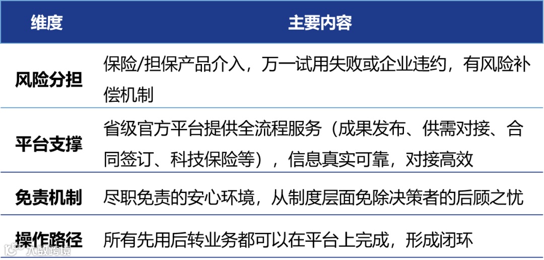 先使用后付费:成果单位将科技成果许可给企业(特别是中小微企业)免费试用一段时间。试用期满意后,双方再通过分期、延期、收益提成等方式“买单”,降低试错成本