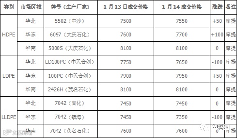 预计明天国内PE市场价格震荡整理。国内LLDPE主流市场价格在7300-8200元/吨;LDPE主流市场价格7700-8800元/吨;HDPE膜主流市场价格在7500-7750元/吨。