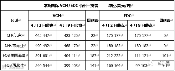 VCM:本周亚洲地区报盘继续下跌,CFR远东报盘下跌22美元/吨至423-425美元/吨,CFR东南亚报盘下跌22美元/吨至468-470美元/吨。