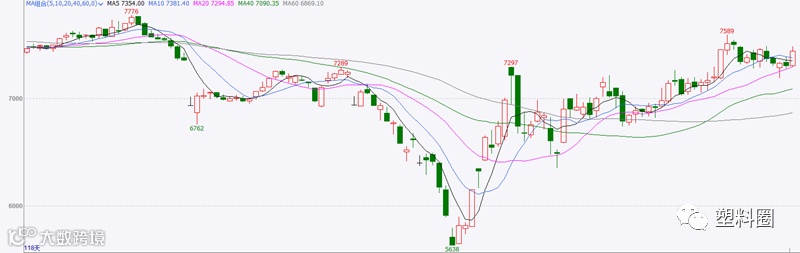 今日国内PP市场震荡有涨,部分走高50-100元/吨。石化方面,出厂价格多数稳定,部分专用料价格调整,多数下调。但值得一提的是,中油华北纤维料及中石化华北部分品种上调出厂价格。期货方面,PP09合约低开后震荡上涨,日间盘多在均线上方运行,增量增仓收带上影线的中阳线。贸易商有意挺价出货,部分货少资源顺势上调。然下游对于高价抵触明显,场内交投略显僵持。当前国内拉丝主流价格在7800-8000元/吨左右,低融共聚价格在7950-8400元/吨左右。