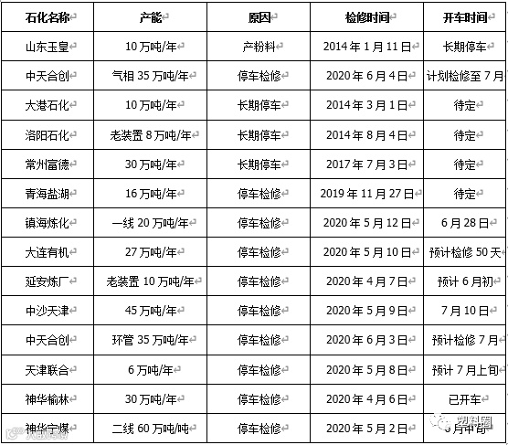 表3 PP石化停车检修统计
