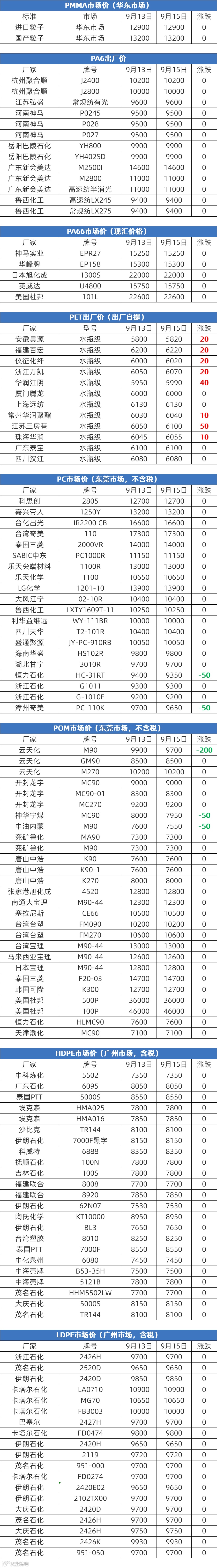 PE上午成交价7100-7600元/吨,成本支撑强、下游补库,下午料窄调;PP期货走高,成本撑但需求差,午盘华东拉丝6750-6950元/吨,后期或回弹;PVC上周弱稳、累库,周末涨,华东电石法4640-4780元/吨。PS华东稳,原料跌、短期偏弱;ABS上周阴跌,本周料续跌;EPS部分跌;PET瓶片华东5780元/吨-50,本周或震荡;PC、PA6均窄幅整理。