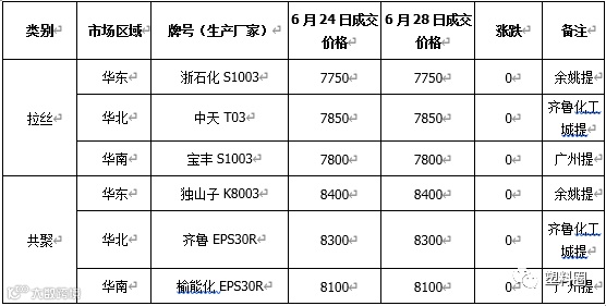 表1 我的塑料网(www.myplas.com)PP市场成交价格(单位:元/吨)