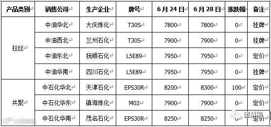 表2 石化出厂价格调整一览表(单位:元/吨)