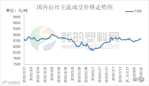 根据我的塑料网真实成交数据显示,本周国内PP报价呈上涨态势。截止8月16日,国内拉丝主流成交价格在8600-8850元/吨不等,部分价格较上一周上调20-50元/吨左右;低熔共聚主流价格在8600-9200元/吨不等,部分价格较上一周上调50元/吨左右。